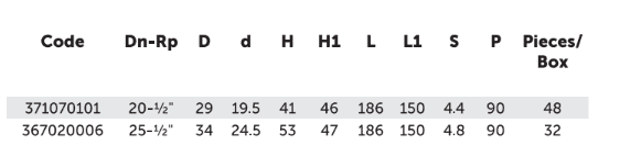 Code Dn-Rp D d H H1 L L1 S P Pieces/Box