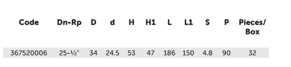 Code Dn-Rp D d H H1 L L1 S P Pieces/Box