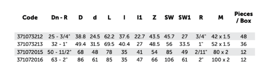 Code Dn-RP D d L I I1 Z SW SW1 Rp M Pieces/boxes